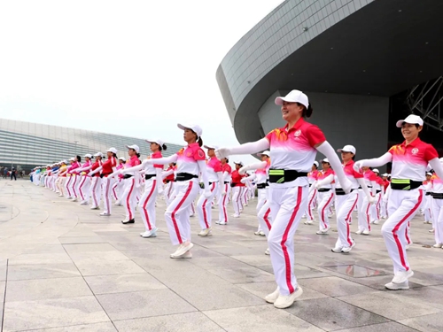 在奧體中心開闊的平臺上,群眾們開展健步走活動,他們踏著快樂的節(jié)拍,每個人的臉上都洋溢著笑容,收獲著滿滿的幸福。