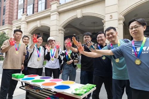 最后,集團領導為各隊發(fā)放了紀念獎牌,大家接過獎牌,在手印墻按下了共同奮斗的印記,榮譽感和成就感溢于言表,“奮斗吧,城發(fā)人”的共識深深印刻在全員心中。