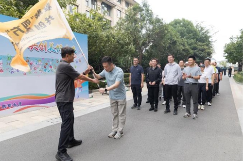 經過三個多小時的同行,各隊陸續(xù)順利抵達終點,圓滿完成了13公里的徒步任務。奔赴終點處,各隊旗手分別向集團黨委書記、董事長萬永生遞交了象征著隊魂和榮譽的隊旗,萬董事長接過承載著大團結大聯合力量的旗幟,徒步階段圓滿結束。