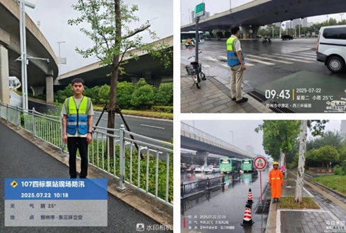 鄭州城建集團(tuán)子公司城投建工道路運(yùn)維項目及時部署防汛工作,投入大量人員、車輛及阻水板、反光錐等物資,明確防汛重點(diǎn),在積水點(diǎn),第一時間確保人員在崗值守。