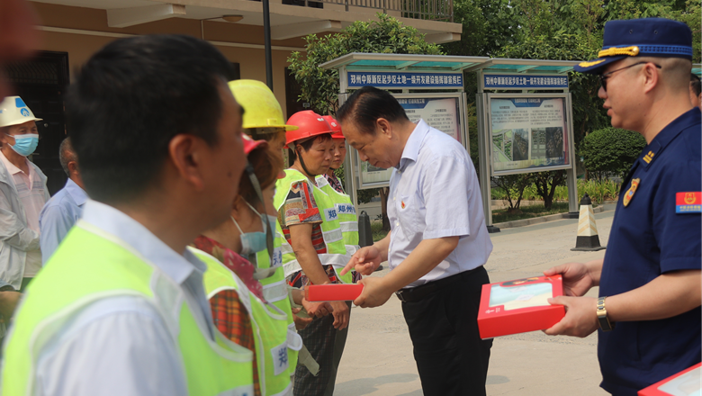 進入夏季以來,持續(xù)出現(xiàn)的高溫天氣,給奮戰(zhàn)在建設(shè)一線的施工人員帶來嚴峻考驗,廣大職工不畏酷暑,堅守崗位,辛勤付出。為做好廣大職工的防暑降溫工作,切實保護職工身體健康,6月11日,鄭州市總工會、鄭州市消防救援支隊到鄭州地產(chǎn)集團西流湖公司中原新區(qū)土地一級開發(fā)項目指揮部開展主題為“送清涼、送安全、送健康、促和諧”的夏季送清涼活動。鄭州市一級巡視員、市總工會黨組書記、主席趙新中,市消防救援支隊副支隊長、滅火救援指揮部部長李隆,市總工會副主席宋少丹,鄭州地產(chǎn)集團有限公司監(jiān)事會主席、工會主席李靜波及西流湖公司黨支部書記、董事長、總經(jīng)理吉獻亮等領(lǐng)導(dǎo)出席活動?;顒佑晌髁骱靖笨偨?jīng)理昌磊主持。