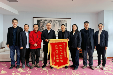 圖為鄭州鄭房測繪有限責(zé)任公司為群眾辦實事,群眾代表贈予錦旗贊揚。