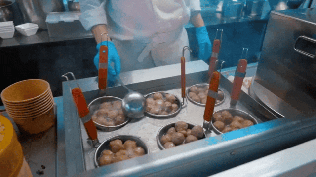 在夜市兩旁,章魚燒、特色酥肉、撈汁小海鮮、小龍蝦……十余家風(fēng)味小吃店一字排開,琳瑯滿目,吸引了不少消費(fèi)者駐足品嘗。
