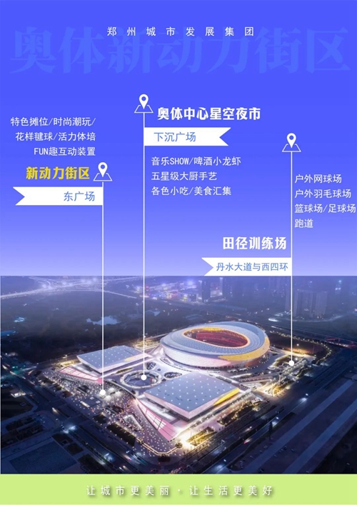 在這座地標(biāo)性運(yùn)動(dòng)主題休閑公園中,以運(yùn)動(dòng)釋放壓力,以美食致敬生活,妝點(diǎn)專(zhuān)屬于鄭州人的鮮活、元?dú)庀娜铡?/span>