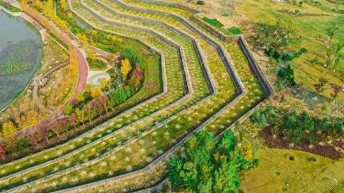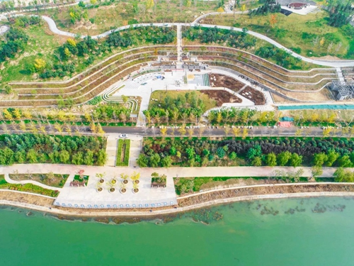 賈魯河生態(tài)修復工程綠化種植共281個品種,種植面積為1023.98公頃、園路187千米、廣場380個。