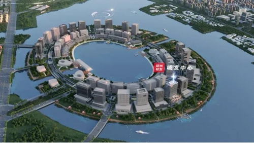 金融島,位于鄭州北龍湖中部核心,由雙環(huán)44棟高層建筑圍合而成,以3.7公里宛如玉帶的南北運河為連接,與CBD共同形成寓意吉祥的“如意”造型。