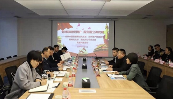 為深入學習貫徹黨的十九屆五中全會精神,進一步促進國資國企改革發(fā)展,不斷探索黨建與企業(yè)科學發(fā)展的有機融合,11月19日下午,鄭州市國資委第四黨支部與鄭州地產(chǎn)集團資產(chǎn)戰(zhàn)略黨支部、西流湖公司黨支部聯(lián)合開展支部共建活動。鄭州市國資委黨委委員、副主任劉學銀,副調研員范桂田,第四黨支部書記、財務監(jiān)管處處長范競,產(chǎn)權管理處處長常艷麗,鄭州地產(chǎn)集團資產(chǎn)戰(zhàn)略黨支部書記、資產(chǎn)運營部部長王樂琪,西流湖公司黨支部書記、董事長、總經(jīng)理吉獻亮,副總經(jīng)理李金光參加活動。