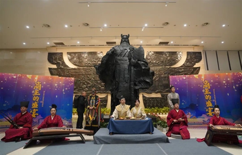 當晚,博物院不再是靜默的展廳,而化身為穿越時空的舞臺。以莊嚴的商湯雕像為背景,古器樂節(jié)目《商王的盛宴》奏響,悠揚古樂聲中,商湯與民同宴、祈求順遂的歷史場景再現(xiàn)眼前,令人恍若穿越三千年。