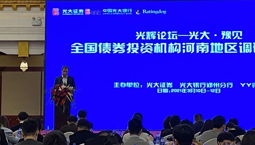 鄭州地產(chǎn)應(yīng)主辦方光大證券、光大銀行鄭州分行邀請參加“光輝論壇—光大·豫見 全國債券投資機構(gòu)河南地區(qū)調(diào)研對接會”。各方投資機構(gòu)涵蓋銀行、證券、保險、信托、基金、資管等150余家投資人及河南省市20余家發(fā)行人云集此次調(diào)研會,鄭州地產(chǎn)作為市屬城投企業(yè),參與此次調(diào)研匯報,積極發(fā)聲、廣泛宣傳,多角度彰顯區(qū)域發(fā)展?jié)摿Α?/span>