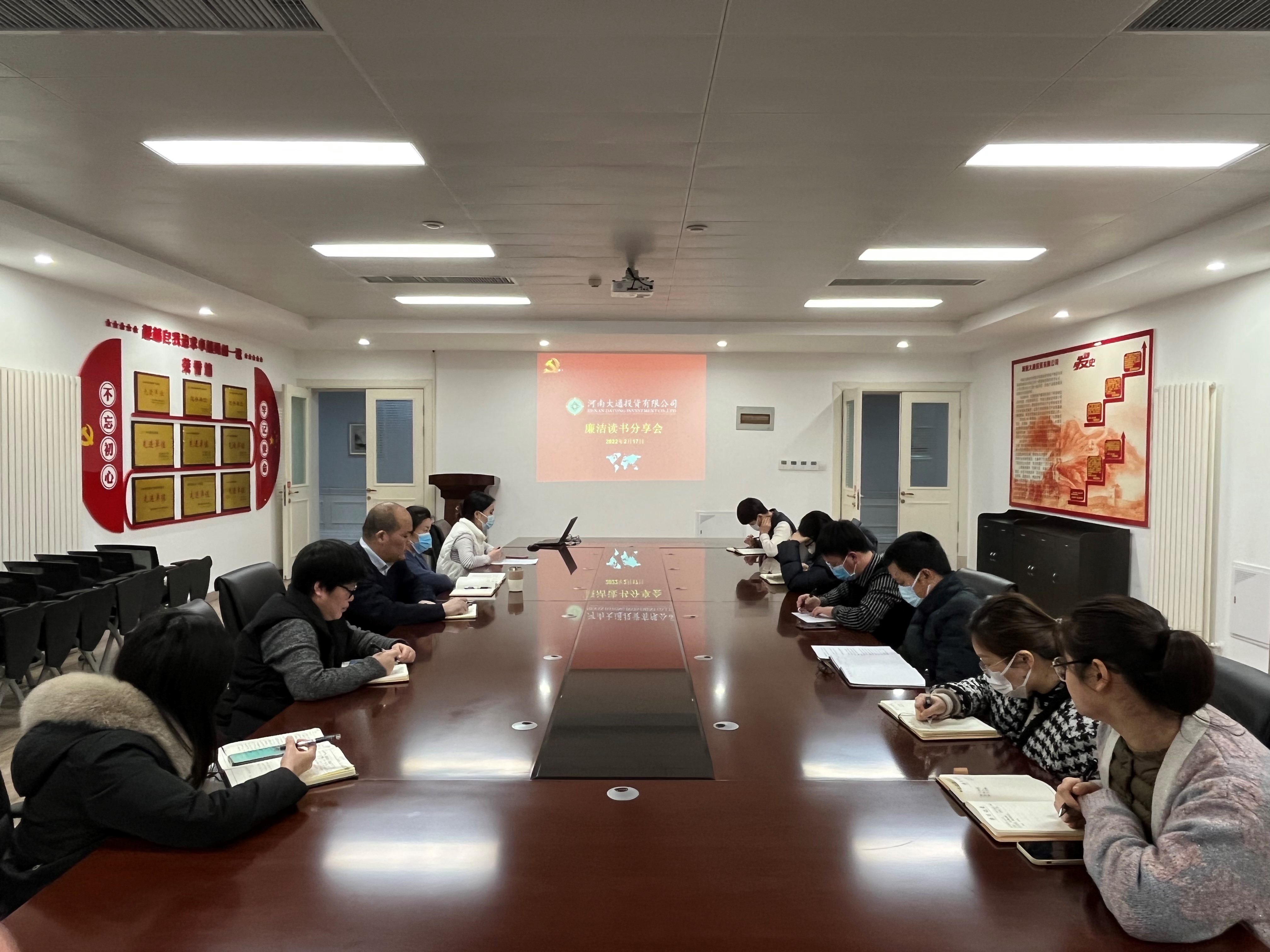 為深入學(xué)習(xí)貫徹習(xí)近平新時(shí)代中國特色社會主義思想,增強(qiáng)“四個(gè)意識”,堅(jiān)定“四個(gè)自信”,做到“兩個(gè)維護(hù)”,提高廣大干部職工紀(jì)律意識,深入推進(jìn)黨風(fēng)廉政教育的制度化和常態(tài)化,2月17日下午,大通公司在會議室組織開展廉潔讀書分享會活動(dòng)。