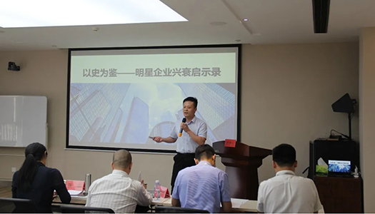 ▲鄭州地產(chǎn)集團投資管理有限公司 總經(jīng)理 于通 試講《以史為鑒 明星企業(yè)興衰啟示錄》