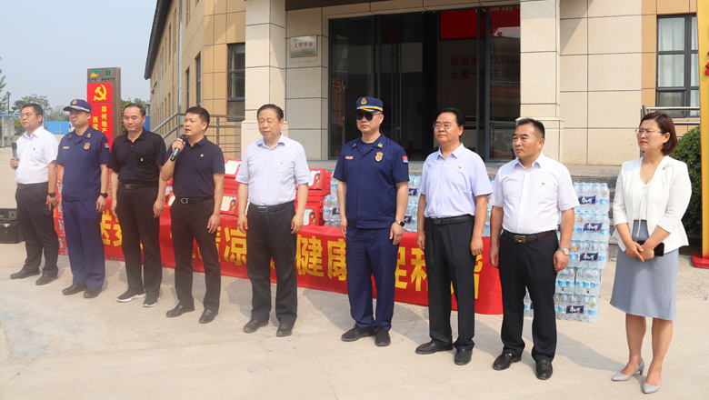進(jìn)入夏季以來,持續(xù)出現(xiàn)的高溫天氣,給奮戰(zhàn)在建設(shè)一線的施工人員帶來嚴(yán)峻考驗,廣大職工不畏酷暑,堅守崗位,辛勤付出。為做好廣大職工的防暑降溫工作,切實保護(hù)職工身體健康,6月11日,鄭州市總工會、鄭州市消防救援支隊到鄭州地產(chǎn)集團(tuán)西流湖公司中原新區(qū)土地一級開發(fā)項目指揮部開展主題為“送清涼、送安全、送健康、促和諧”的夏季送清涼活動。鄭州市一級巡視員、市總工會黨組書記、主席趙新中,市消防救援支隊副支隊長、滅火救援指揮部部長李隆,市總工會副主席宋少丹,鄭州地產(chǎn)集團(tuán)有限公司監(jiān)事會主席、工會主席李靜波及西流湖公司黨支部書記、董事長、總經(jīng)理吉獻(xiàn)亮等領(lǐng)導(dǎo)出席活動。活動由西流湖公司副總經(jīng)理昌磊主持。