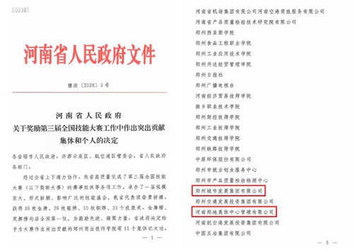 近日,河南省人民政府印發(fā)《關(guān)于獎(jiǎng)勵(lì)第三屆全國(guó)技能大賽工作中作出突出貢獻(xiàn)集體和個(gè)人的決定》,對(duì)在第三屆全國(guó)技能大賽中表現(xiàn)優(yōu)異、貢獻(xiàn)突出的集體和個(gè)人予以隆重表彰。其中,鄭州城市發(fā)展集團(tuán)有限公司、河南鄭地奧體中心管理有限公司榮獲集體記功,這份榮譽(yù)既是對(duì)兩單位賽事保障工作的高度肯定,更是對(duì)其踐行國(guó)企擔(dān)當(dāng)、彰顯匠心精神的有力褒獎(jiǎng)。